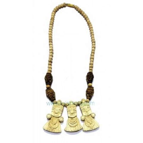 TULSI WOOD MAKE Jagannath, Balbhadra,Subhdra Dities LOCKET WITH NECK MALA. Made in Vrindavan by www.tulsimala.co.in. Each and every one of these Locket Mala is a work of Very Fine Hand art. They will vary slightly in size, color and design.